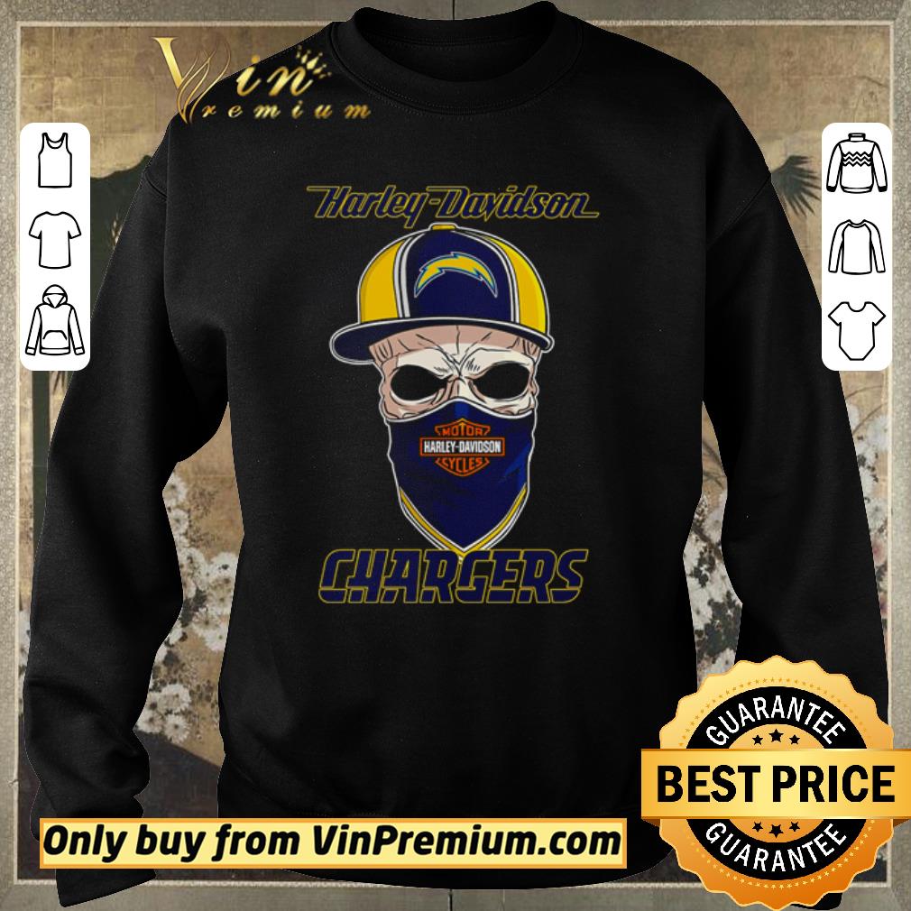 Awesome Los Angeles Chargers skull wearing Harley-Davidson Cycles mask shirt sweater, Hoodie, Sweater, Longsleeve T-Shirt For Men and Women