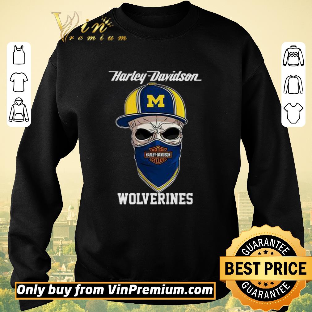 Awesome Skull Harley Davision wear a hat Wolveringes shirt