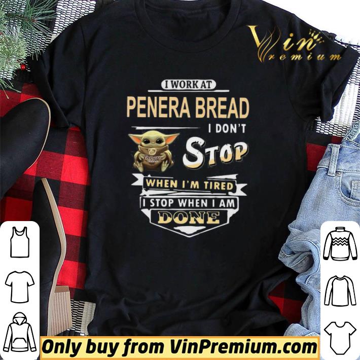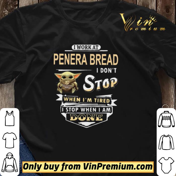 Baby yoda hug I work at panera bread I dont stop when im tired I stop when I am done shirt sweater, Hoodie, Sweater, Longsleeve T-Shirt For Men and Women