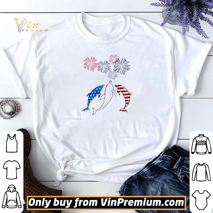 Dolphin Happy July 4th Firework American Flag shirt sweater, Hoodie, Sweater, Longsleeve T-Shirt For Men and Women