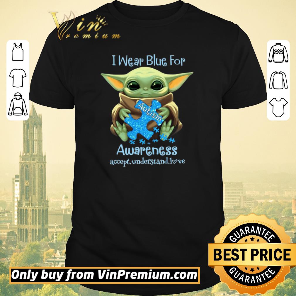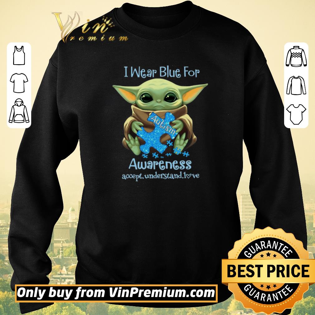 Funny Baby Yoda I Wear Blue For Autism Awareness Accept Understand Love shirt sweater