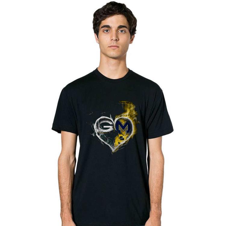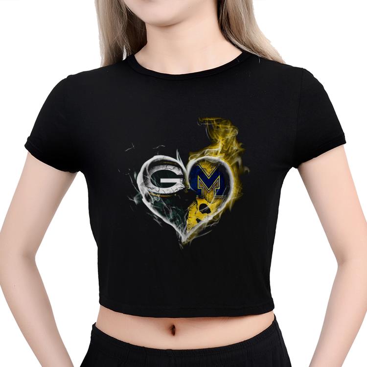 Heart Green Bay Packers and Michigan Wolverines Football Shirt