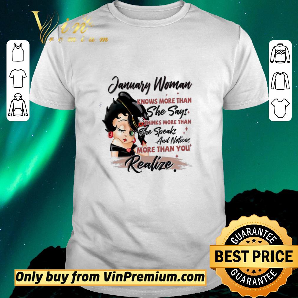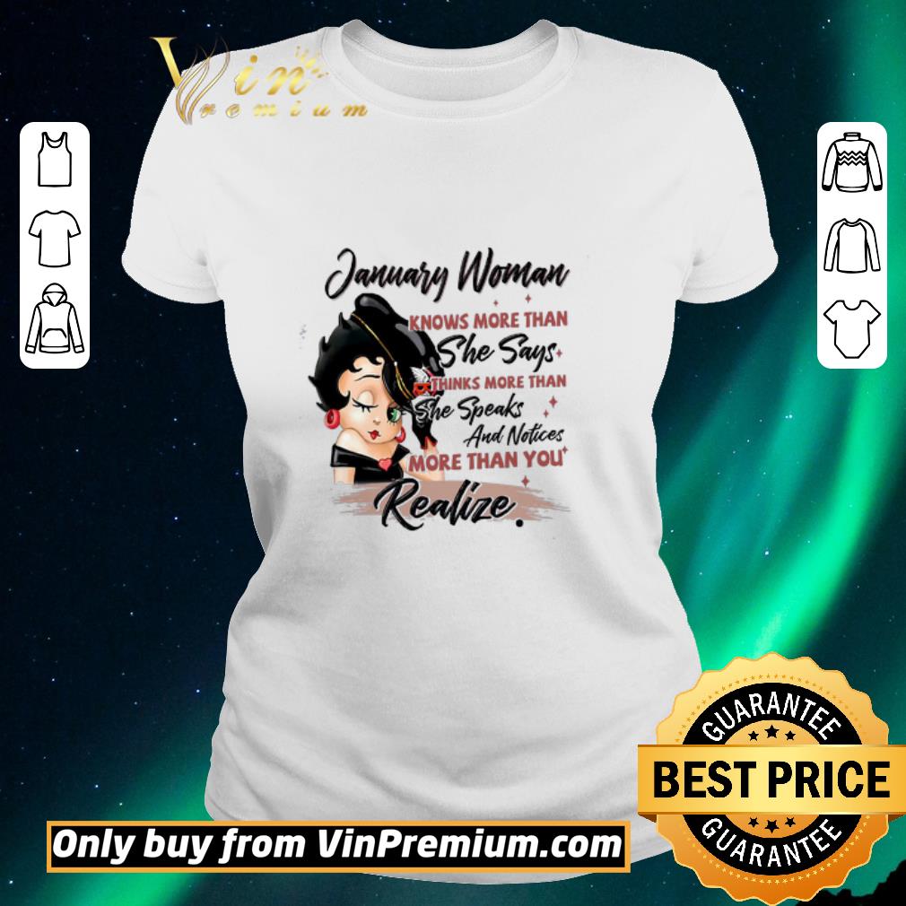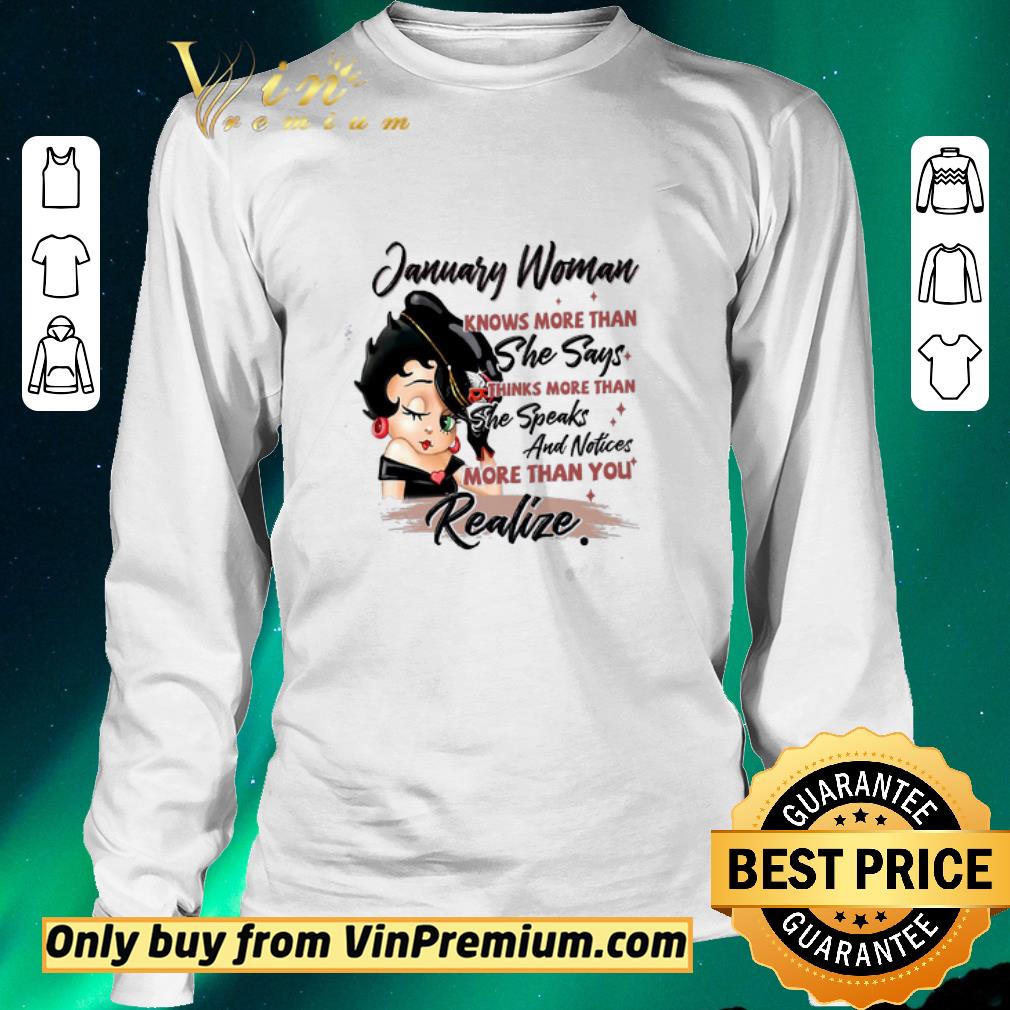 Hot Betty Boop January Woman Knows More Than She Says Thinks More Than shirt sweater, Hoodie, Sweater, Longsleeve T-Shirt For Men and Women