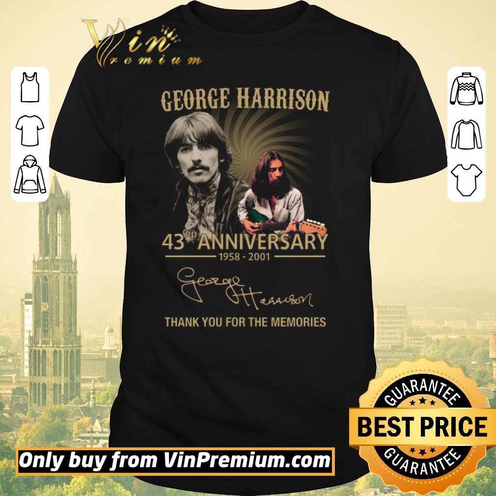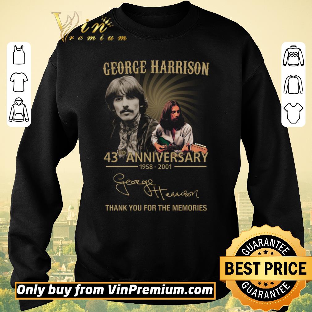 Hot George Harison 43rd Anniversary 1958 2020 Signature Thank You Forr The Memories shirt sweater, Hoodie, Sweater, Longsleeve T-Shirt For Men and Women