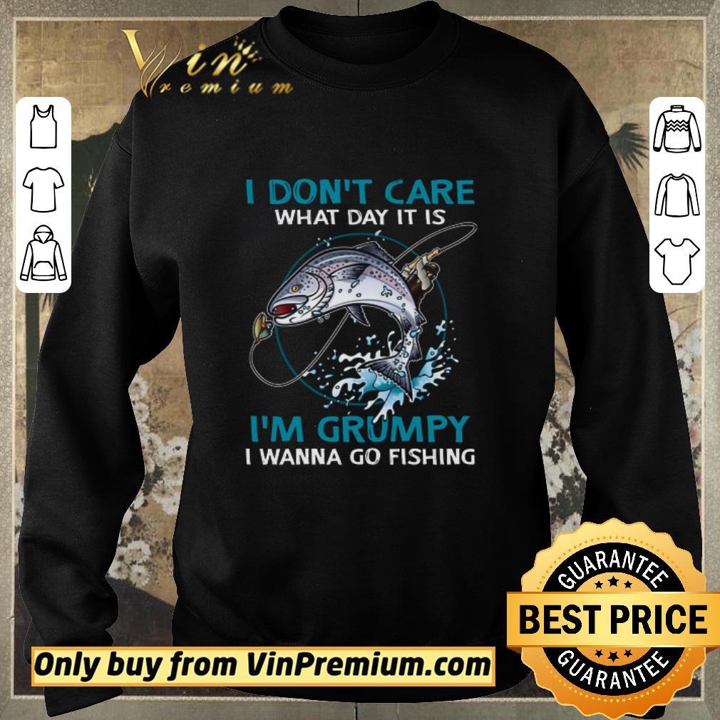 Hot I Don’t Care What Day It Is I’m Grumpy I Wanna Go Fishing shirt sweater, Hoodie, Sweater, Longsleeve T-Shirt For Men and Women