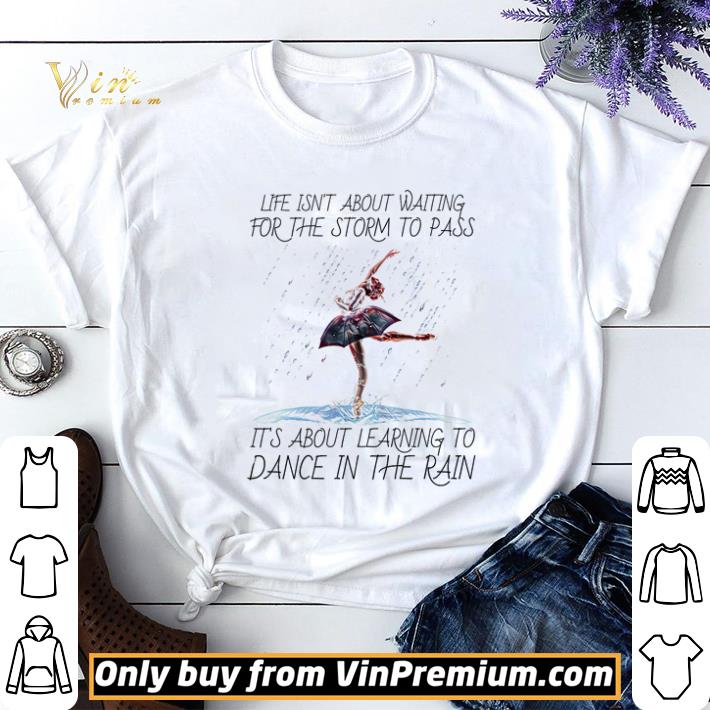 Don’t hesitate, let’s buy Life isn’t aout waiting for the storm to pass it’s about learning to dance in the rain shirt sweater now. Surely you will be satisfied because of 100% guaranted and refund money, fast shipping in the world, high quality fabric and printing. Click button bellow to see price and grab it!
