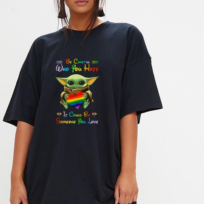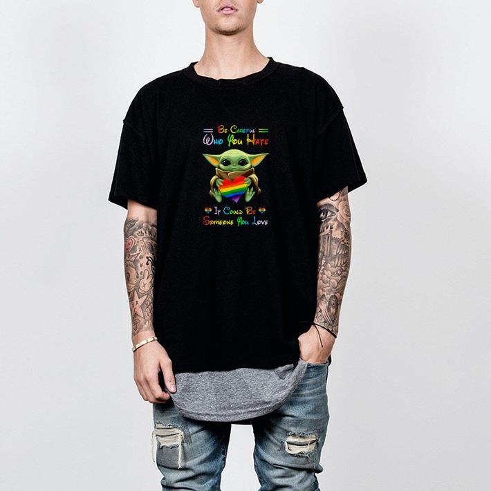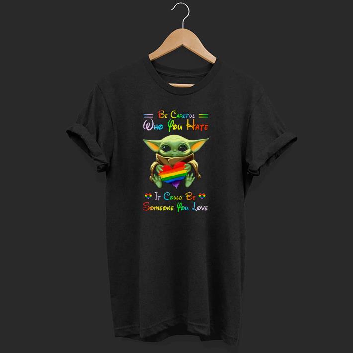 Nice Baby Yoda Hug LGBT Be Careful Who You Hate It Could Be Someone You Love Shirt