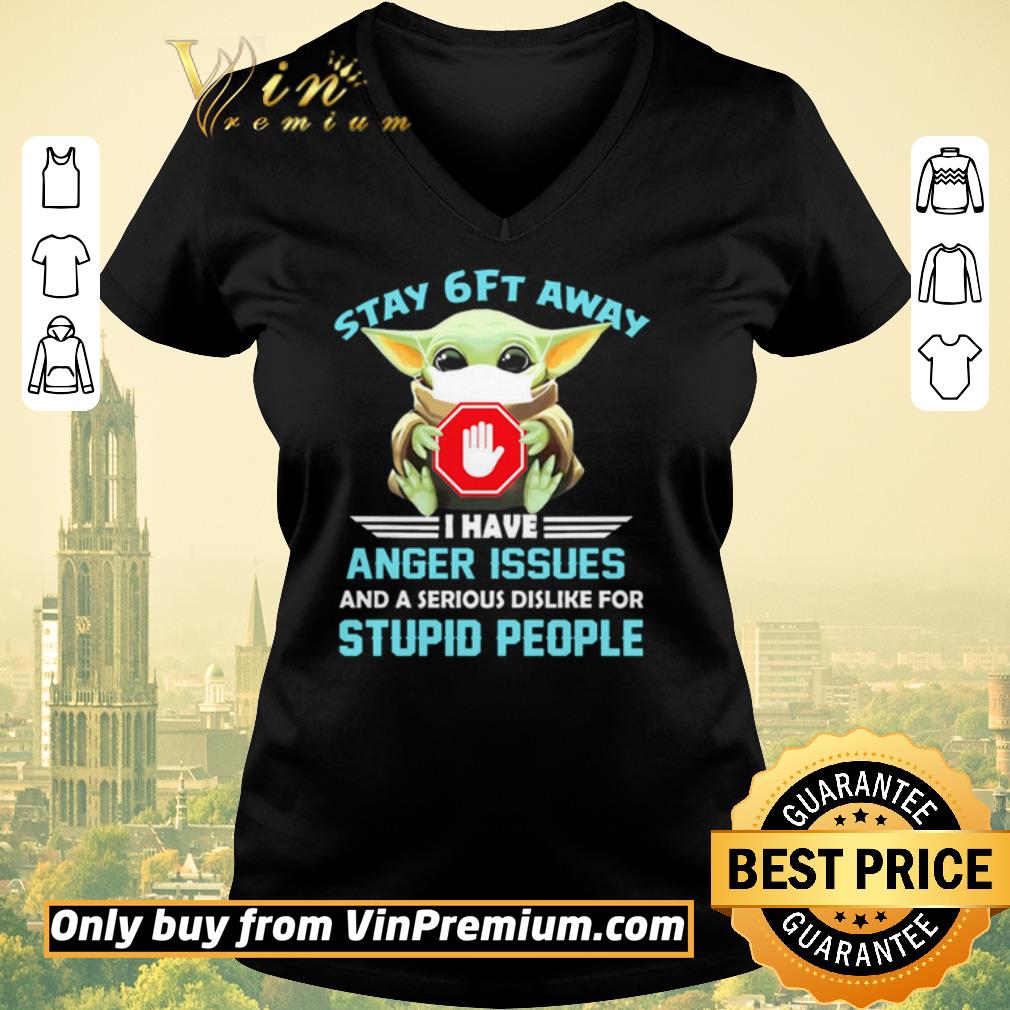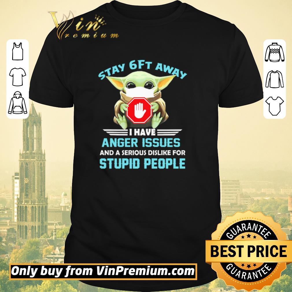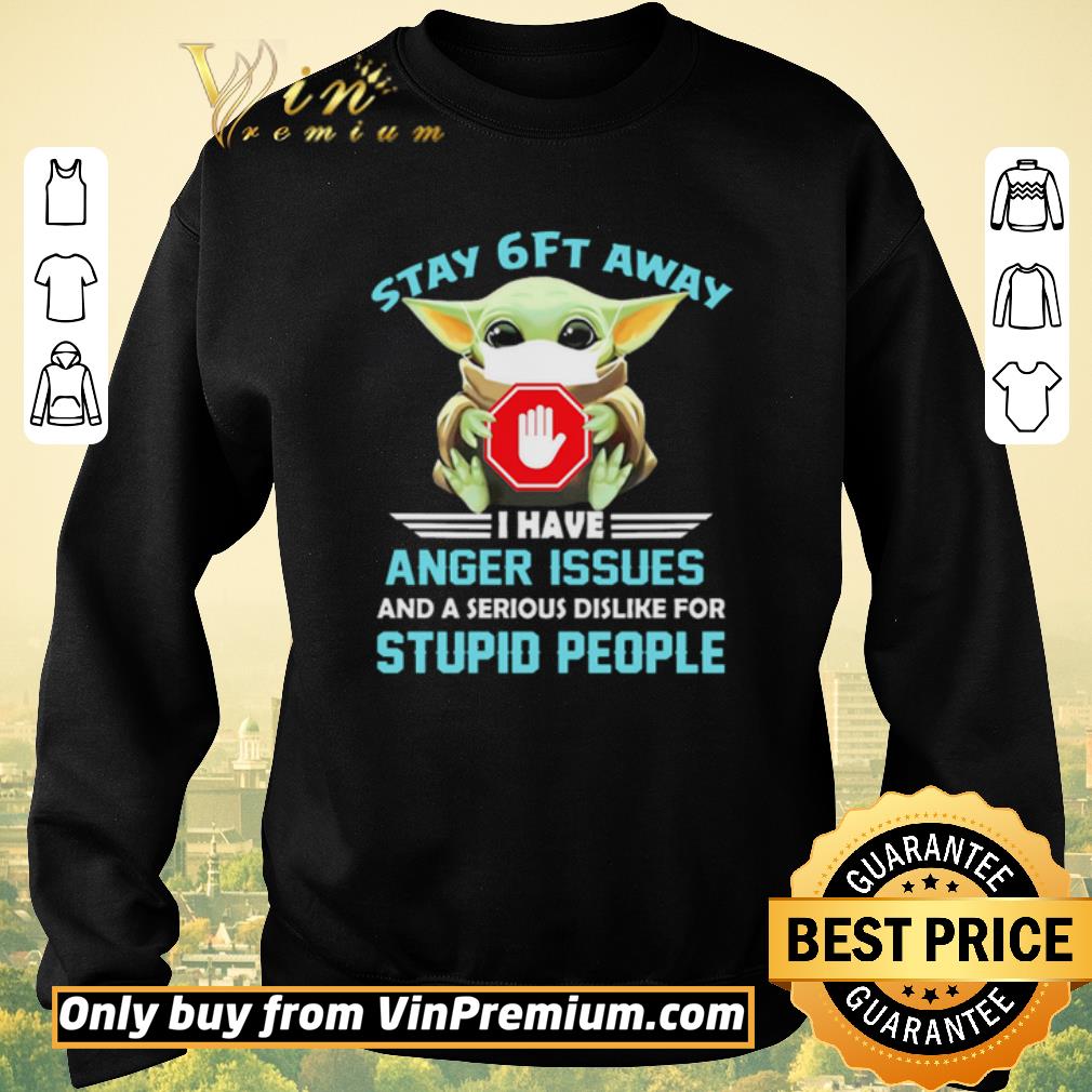 Nice Baby Yoda stay 6 ft away I have anger issues and a serious dislike for stupid people shirt sweater, Hoodie, Sweater, Longsleeve T-Shirt For Men and Women
