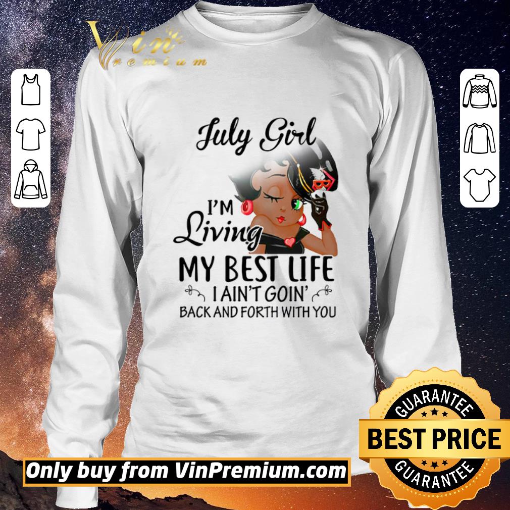 Nice Betty Boop July Girl I’m Living My Best Life I Ain’t Goin Back And Forth shirt sweater is the product that we spent most of our time to design and produce. July, Girl, Betty Boop will definitely help you to be a fashional person. Buy it here!