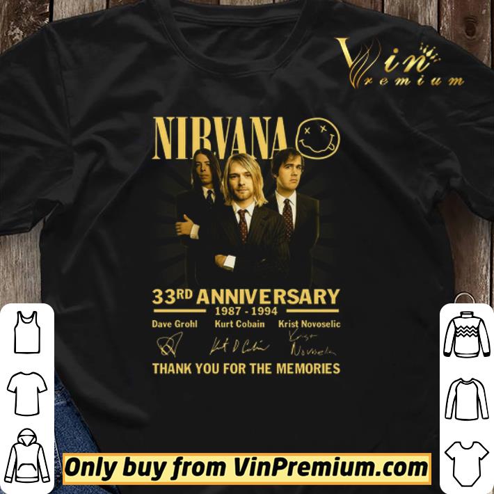Nirvana 33rd Anniversary 1987 1994 Signature Thank You For The Memories shirt sweater is the product that we spent most of our time to design and produce. hard rock cafe shirt will definitely help you to be a fashional person. Buy it here!