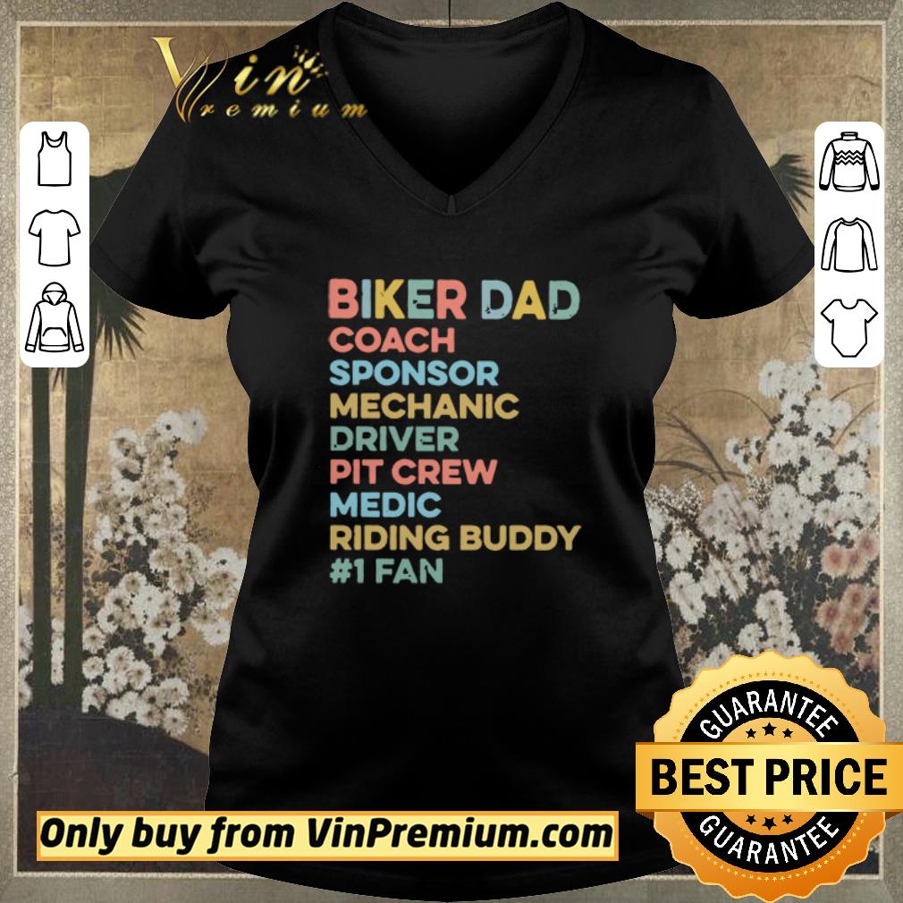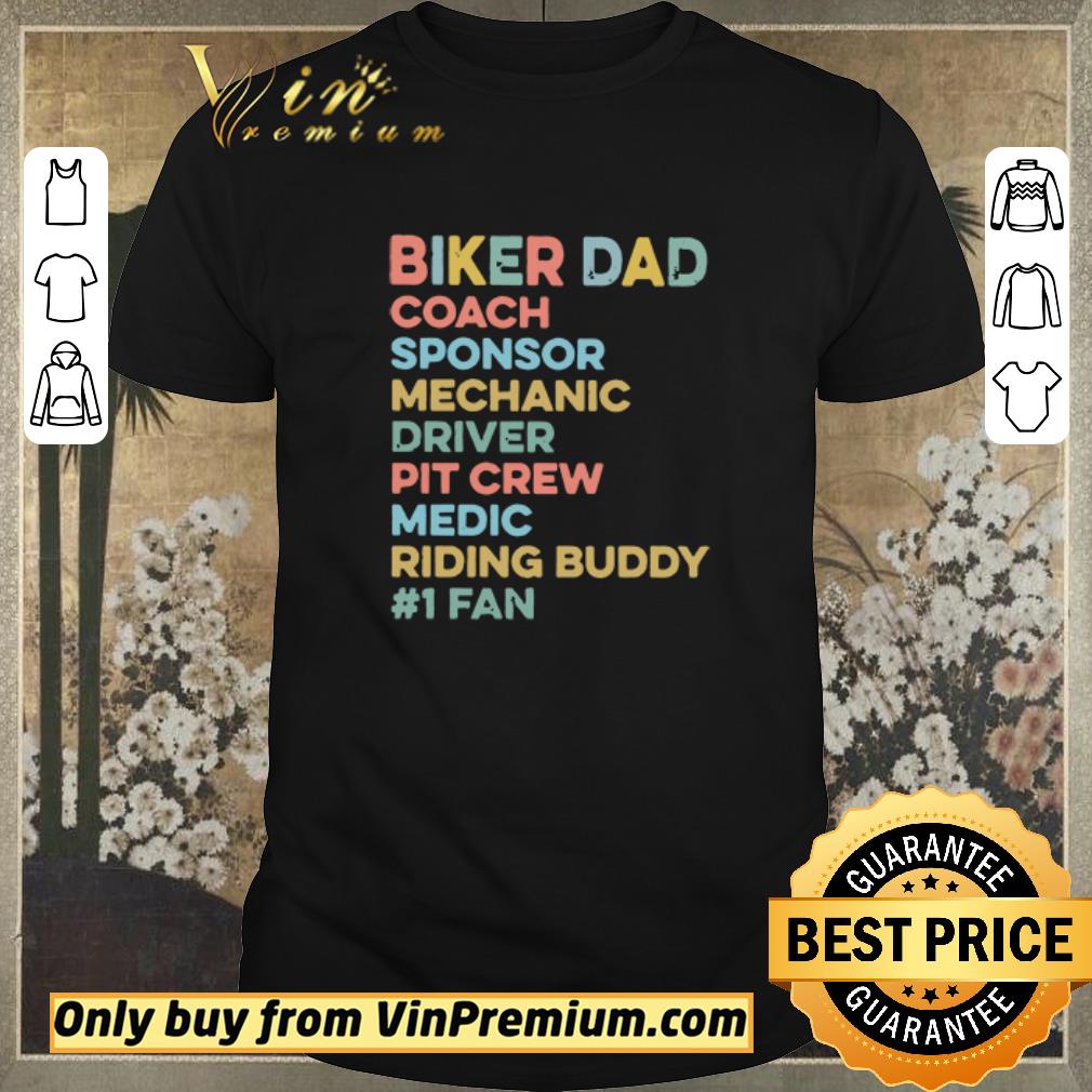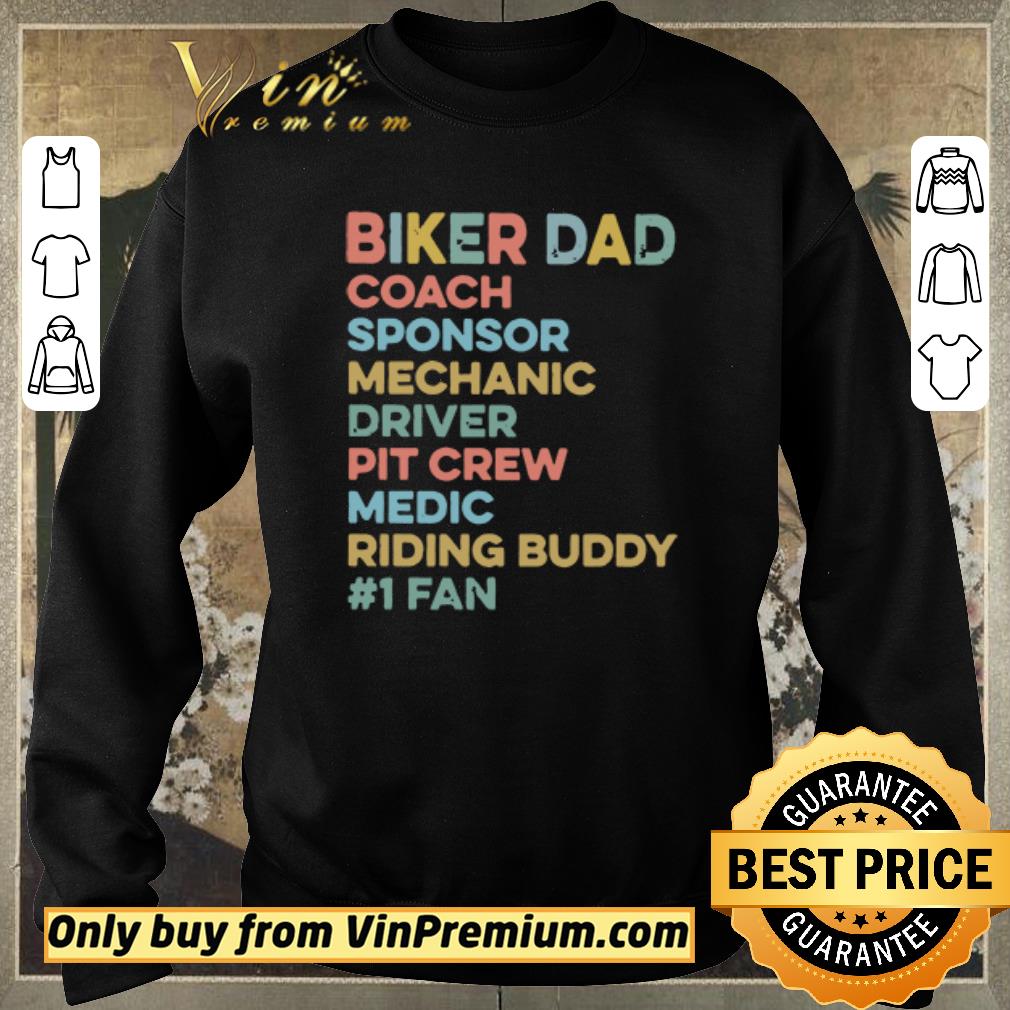 We hope you will own Official Biker Dad Coach Sponsor Mechanic Driver Pit Crew Medic Riding Buddy 1 Fan shirt sweater because the details such as the picture and the symbols on Dad, Biker, Mechanic show your fashion style. Wear it and make people be attracted!