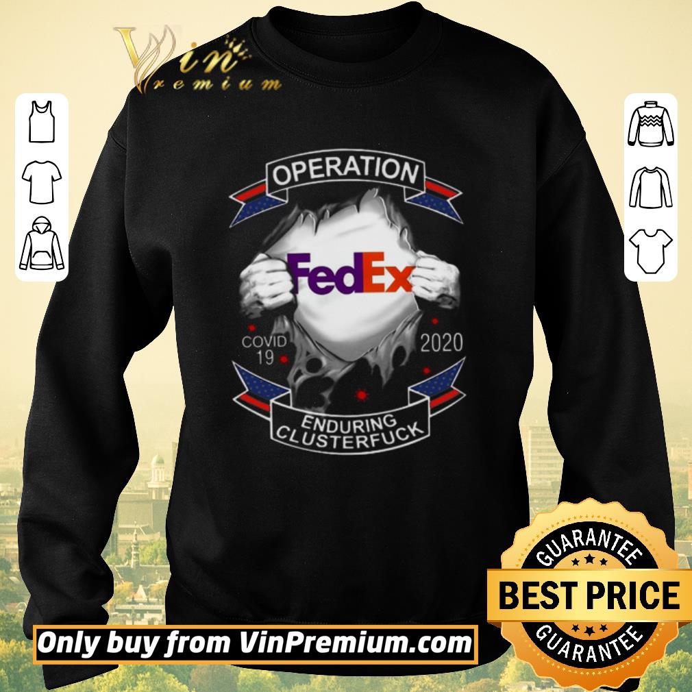 Pretty Operation Fedex Covid 19 2020 Enduring Clusterfuck shirt sweater is an awesome shirt about topic Trending, Medical: Covid 19, Fedex that our team designed for you. LIMITED EDITION with many styles as a hoodie, long-sleeve tee, v-neck, tank-top, sweater, youth tee, sweat shirt. This shirt has different color and size, click button bellow to grab it.